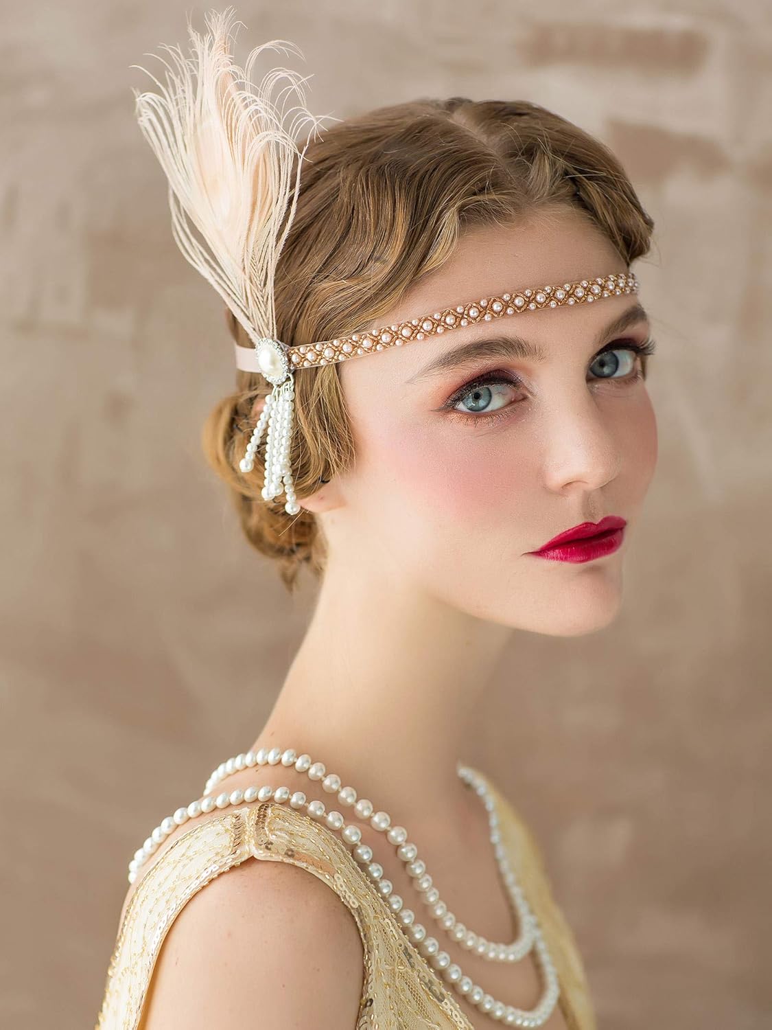 ✔ This flapper headband is made from a lushly beaded headband with pearls on either side and two perfectly curled Ostrich feathers. A perfect gatsby accessory for your 1920 flapper girl costume.