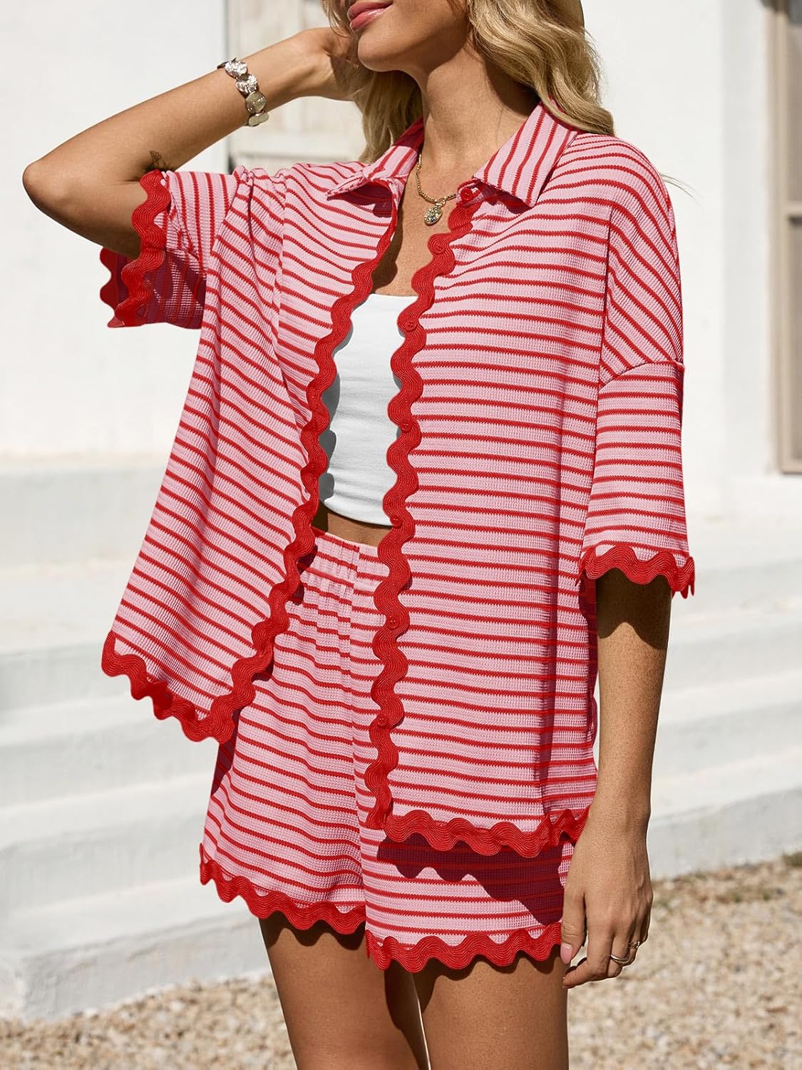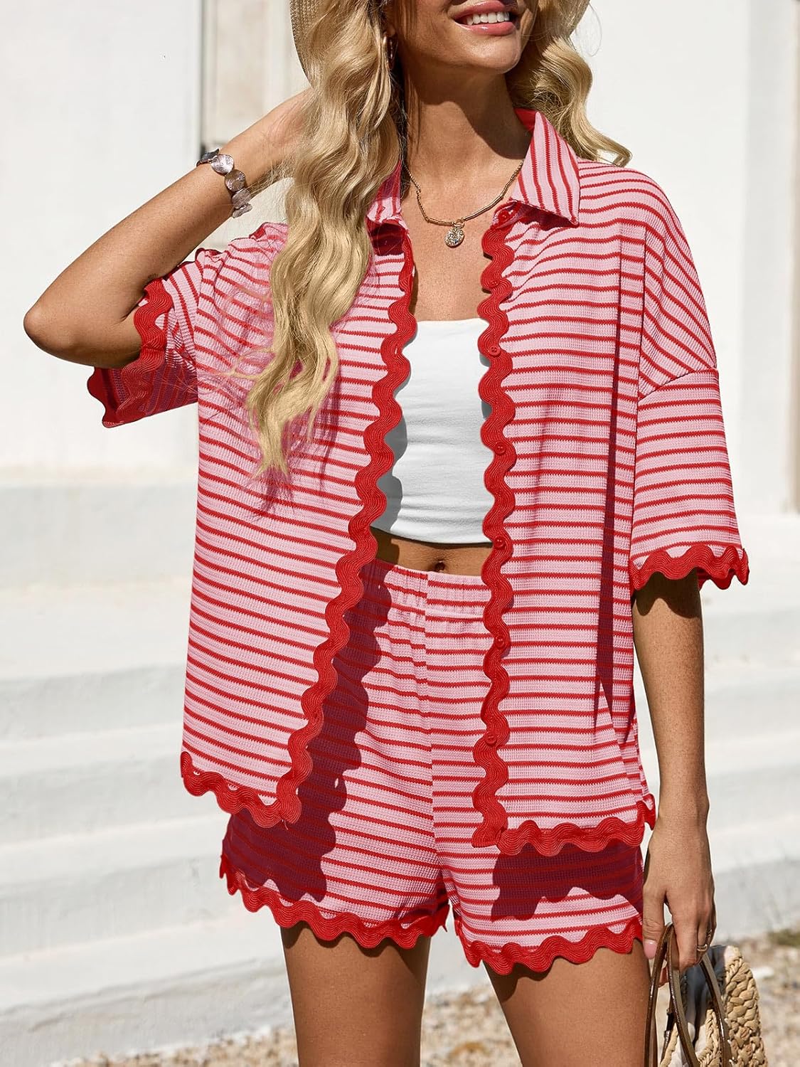 Striped Vacation Outfits For Women 2 Piece