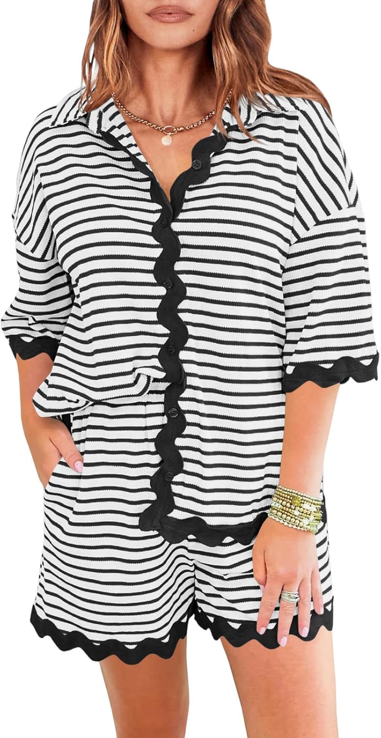 Striped Vacation Outfits For Women 2 Piece