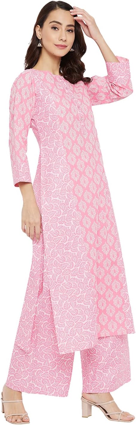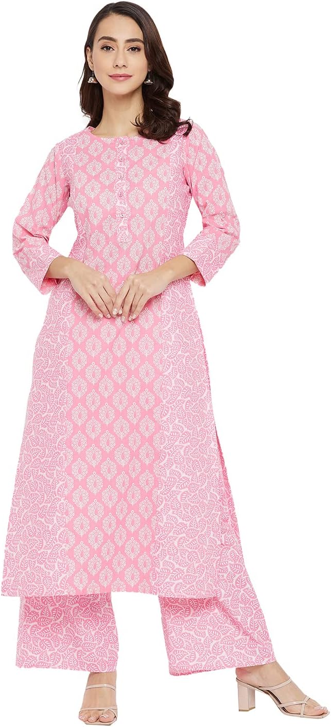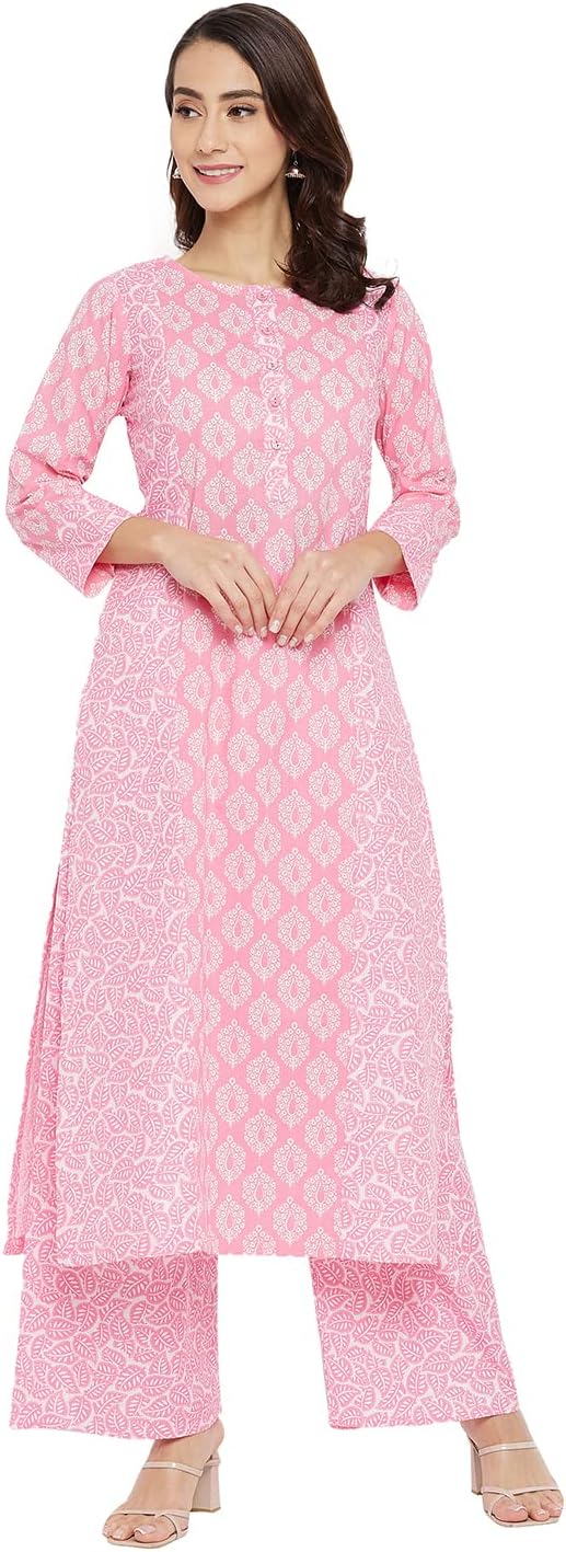 Be the first to review “Tissu Women’s Cotton Pink Floral Printed Straight Kurta with Palazzo”