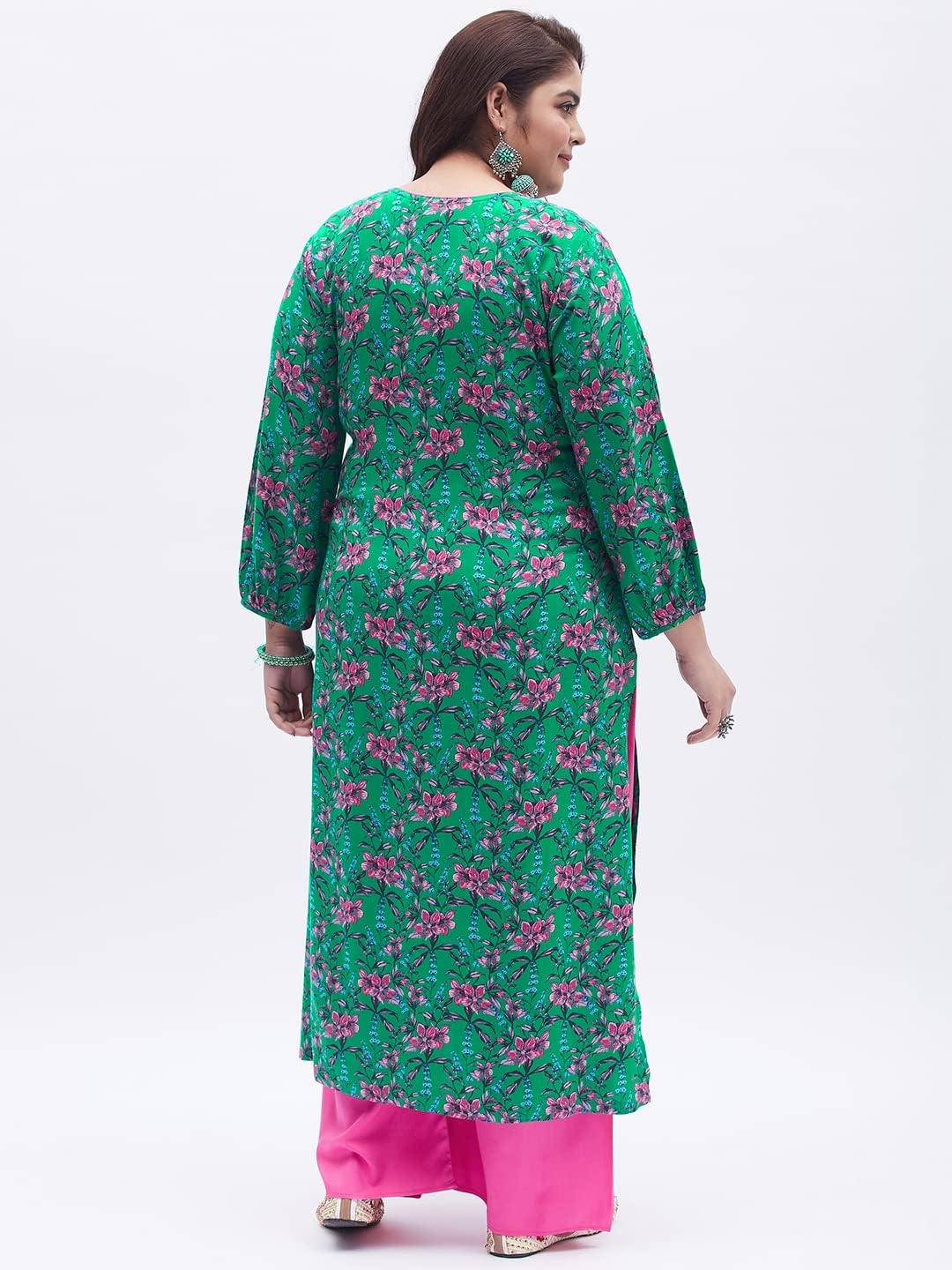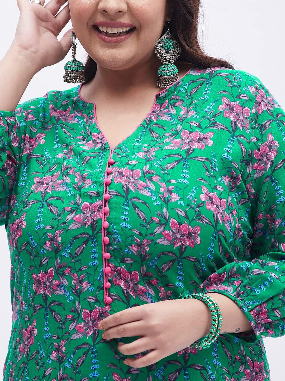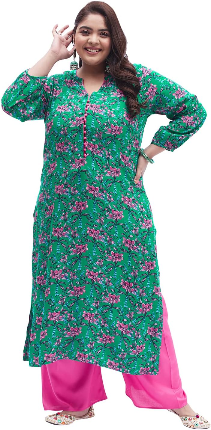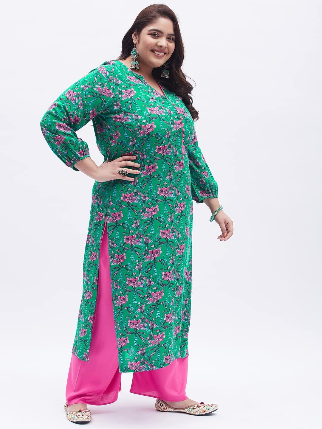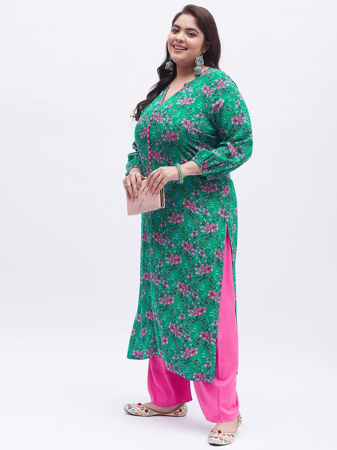 Be the first to review “Tissu Women’s Plus Size Dark Green & Pink Printed Kurta with Palazzo”