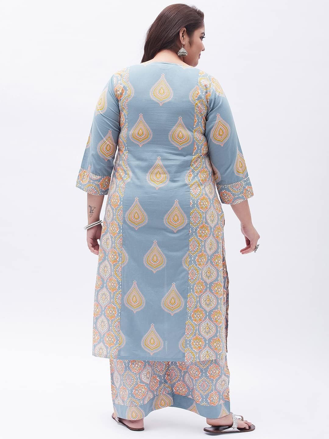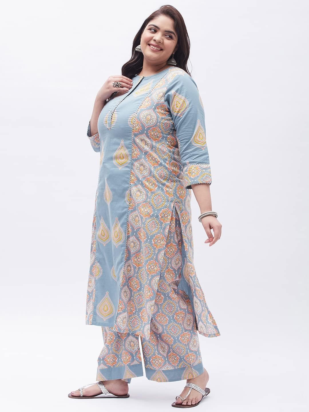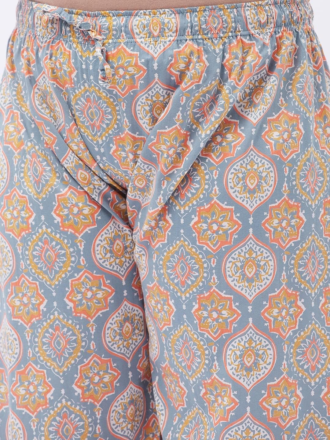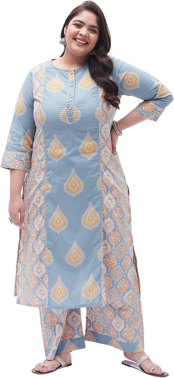 Our collection includes different styles of straight kurti, kurta palazzo set, kurta trouser set, for casual and festive occasions that cater to a wide variety of the wardrobe requirements of the Indian women.Tissu Clothing Presents Women’s Grey Floral Printed Straight Kurta with Palazzos Is An Exclusive Ethnic Wear Manufactured Keeping In Mind The Taste And Preference Of Today’s Women. Inseam Length Of Palazzos Is 23 Inches, And the Outseam Length is 38 Inches For All Sizes. Palazzo Has Elasticated Waistband With Drawstrings For Comfort Fit. Featuring Calf Length With 3/4 Sleeves And Round Neck. This Kurta Set Is Made From Cotton Fabric. It’s Very Soft And Skin Friendly. This kurta has openable Front Buttons and side slits. You Will Always Be The Center Of Attraction Of Any Gathering By This Kurta Set. This Kurta Set Will Add Extra Class To Your Looks. This Can Be A Perfect Selection For You.
