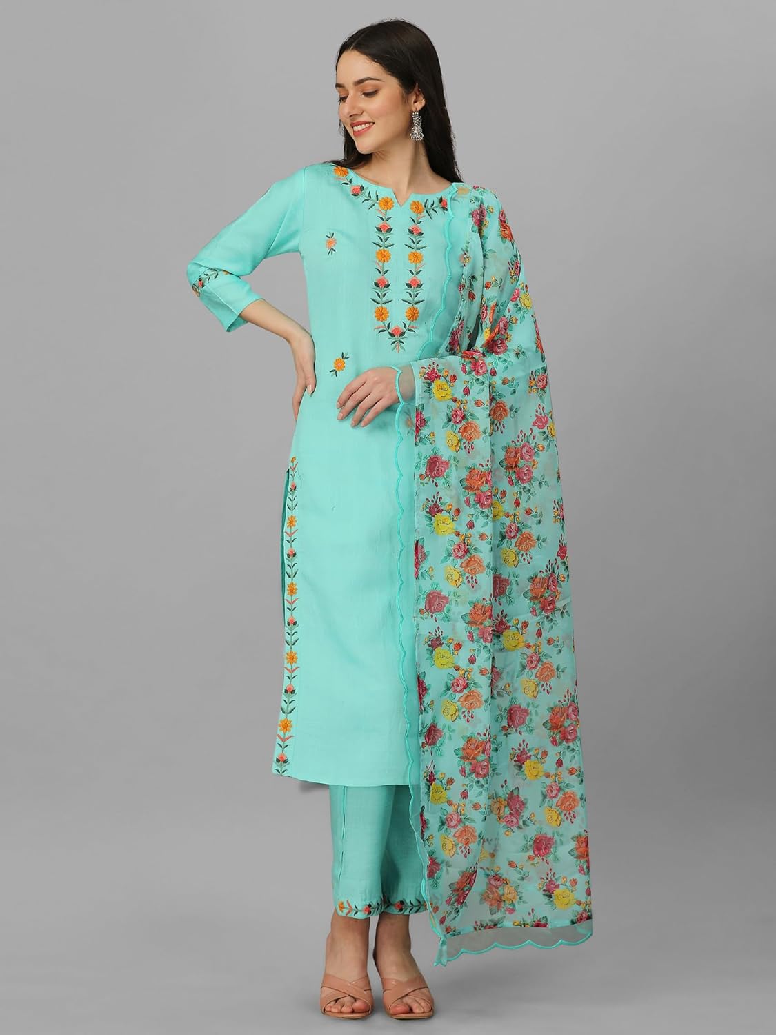 Kurta Set with Floral Dupatta