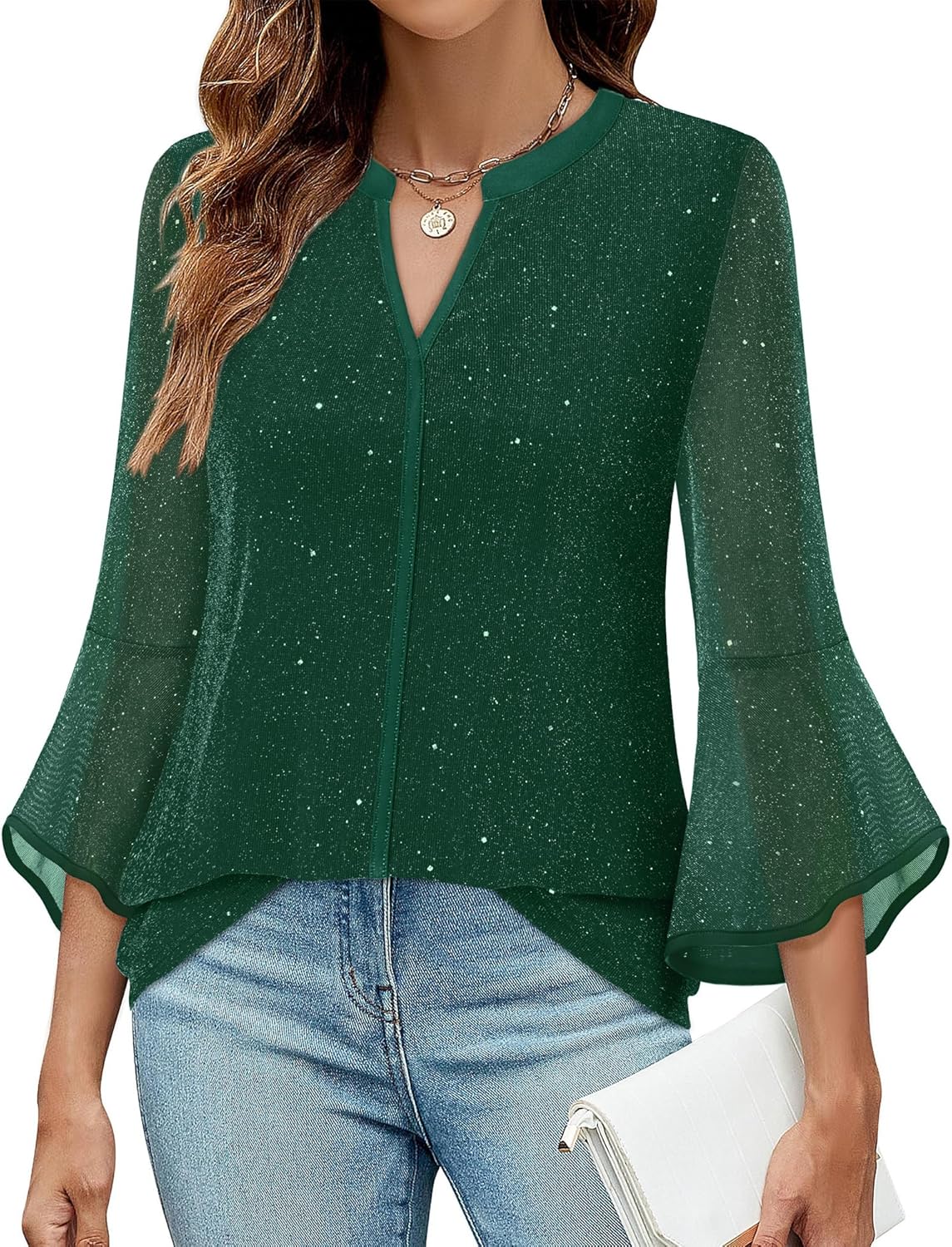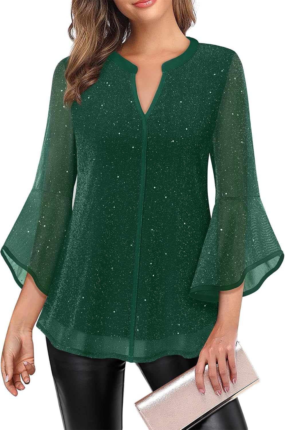 Ladies Tops And Blouses With Delicate Chest Line Splicing Design Perfectly Embellishes The V-Neck While Echoing The Cuffs, Creating A Casual And Exquisite Appearance.