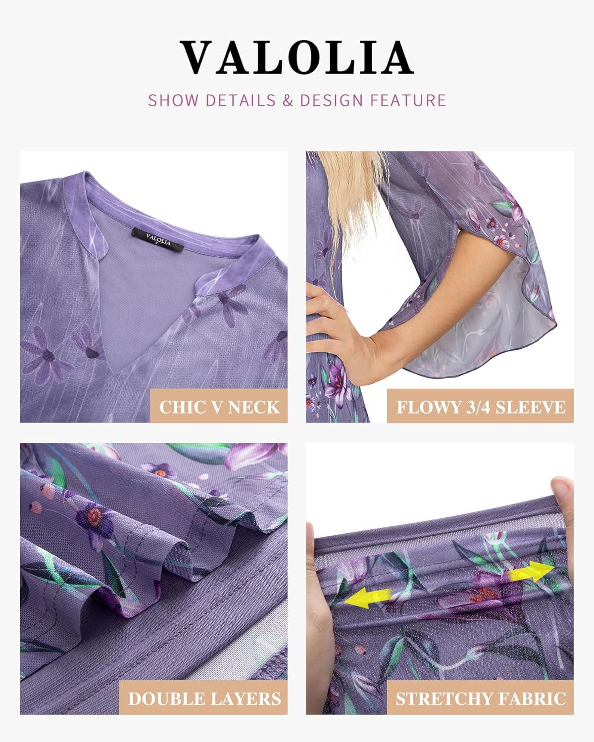 Be the first to review “VALOLIA Women’s 3/4 Sleeve Floral Tunic Tops V Neck Double Layers Loose Fit Mesh Blouses Shirt”