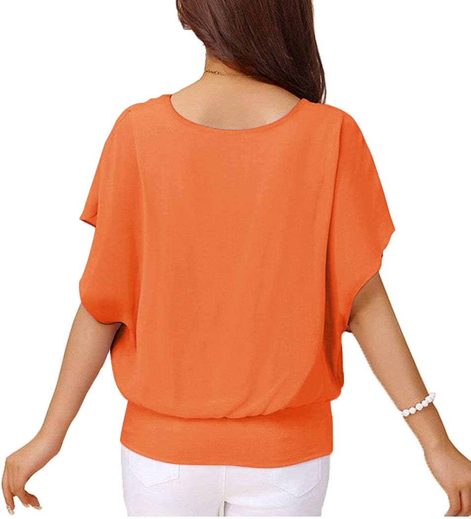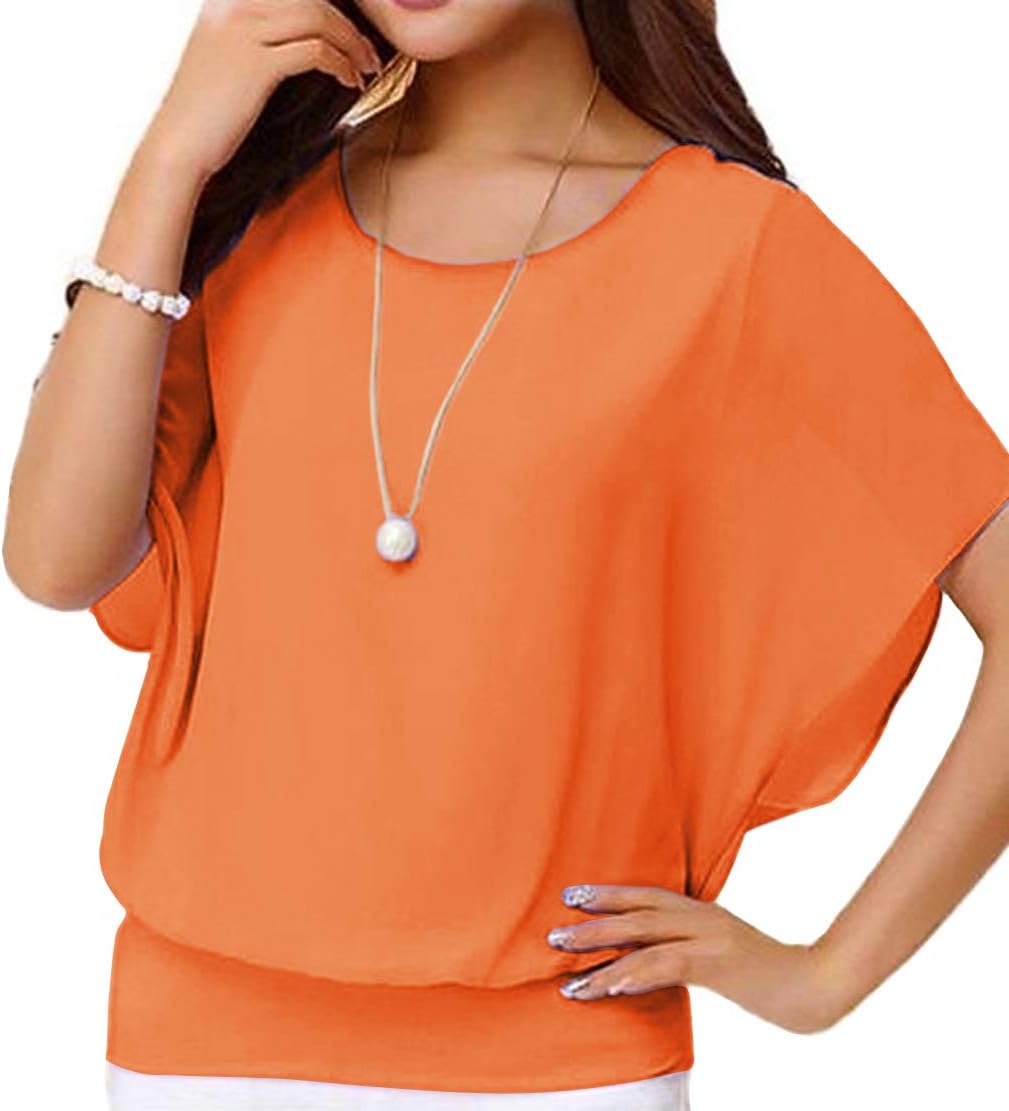 *Women Floral Printed Casual Short Sleeve Round Neck Fit Slim Batwing Chiffon T-shirts Elegant Tops Blouse