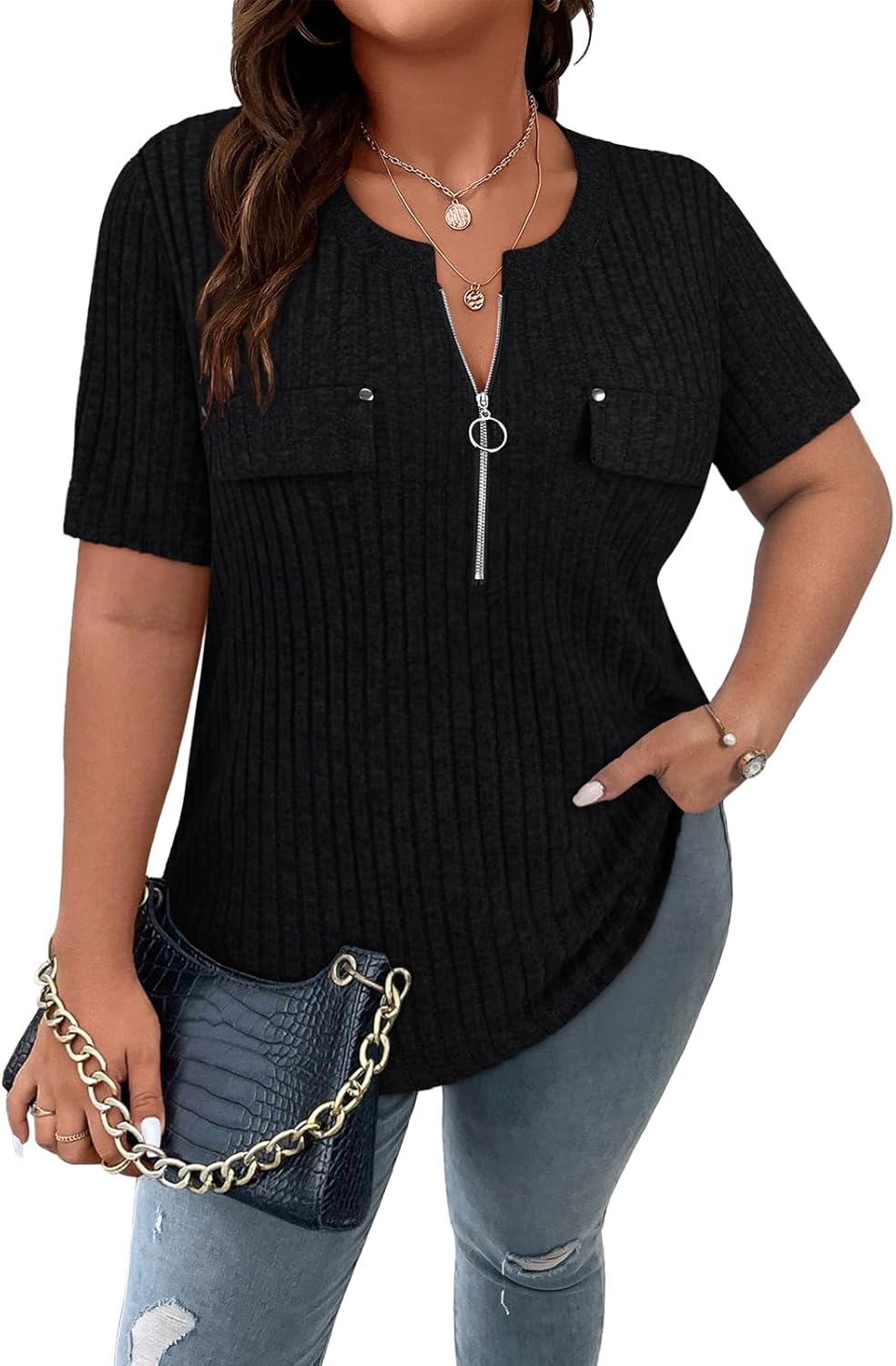 Viracy Plus Size Womens Tops 1/4 Zip Up Casual Shirts Lightweight Short Sleeve Tunics
