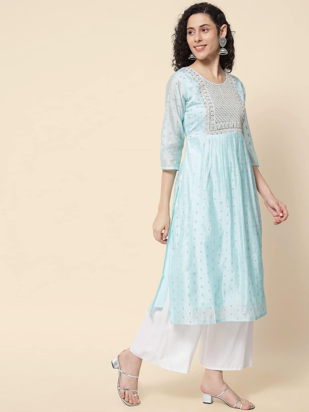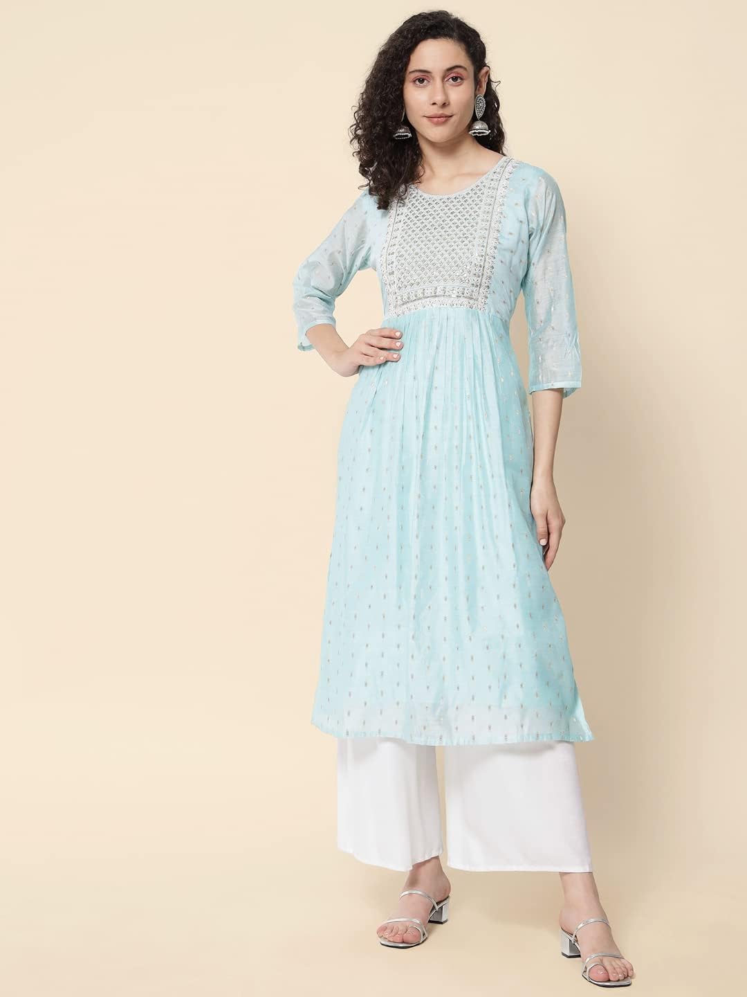 The Silk Fabric in this attractive color ready to wear Kurta will make sure that the fitting of this beautiful readymade Kurta looks elegant on you. Crafted from silk fabric, it is light in weight and will be soft against your skin. Its design and beautiful colour will fetch a lot of second glances as you club it with contrast colored pumps and flashy accessory. Our Products are Made and stitched using quality fabrics and yarns under the strict surveillance of our well-versed Executives. It is capable of making you look gorgeous. Wear it and put your step in the world of fashion. It looks stunning every time you match it with accessories. This apparel becomes your go-to choice in parties and other formal or casual events. It goes perfectly with jeans, trousers, and skirts while amping up your style quotient. The quality fabric keeps the top very lightweight and comfortable. It ensures that you could flaunt a sporty appearance with ease and cosiness. The kurta will retain its quality and color with a hand wash. It is made to give you exceptional performance with a little care. This is an excellent gift option for any woman. You can give it to your friend, spouse, or colleague on a number of occasions.