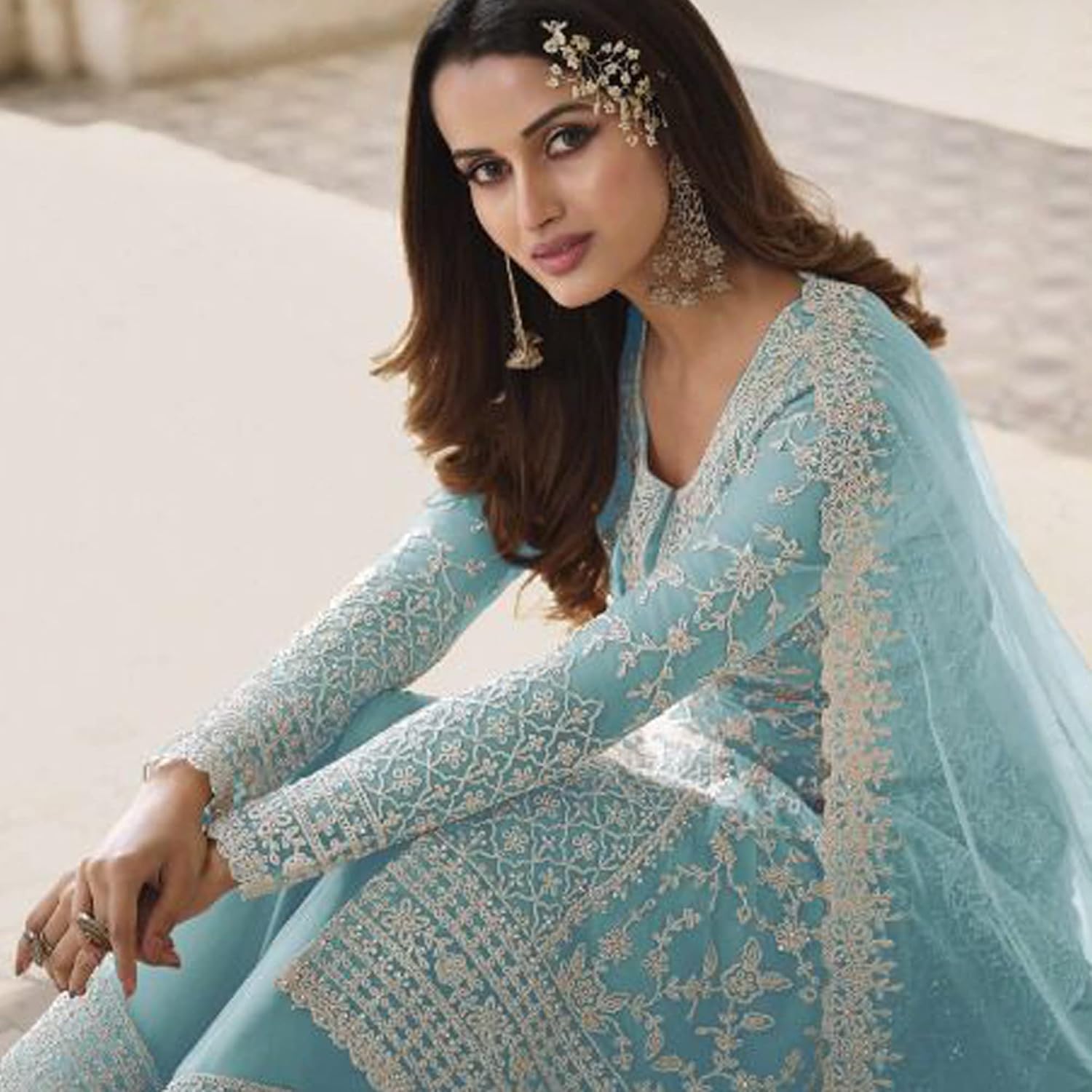Designer fancy traditional wears which show Indian/Pakistani traditional form its glamorous look bring out the true diva in and reinvent your true self add grace and charm to your appearance in this beautiful designer embroidery work is a perfect fit for all parties &occasion where you want to show your appearance.