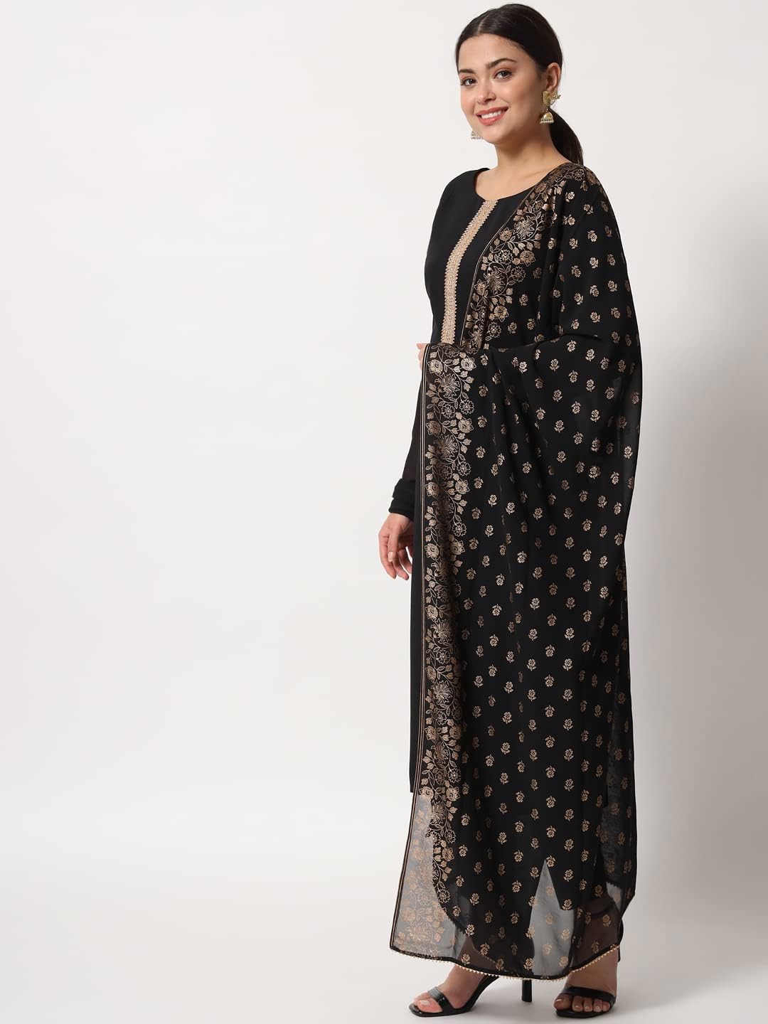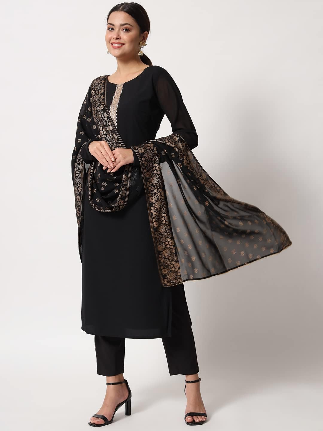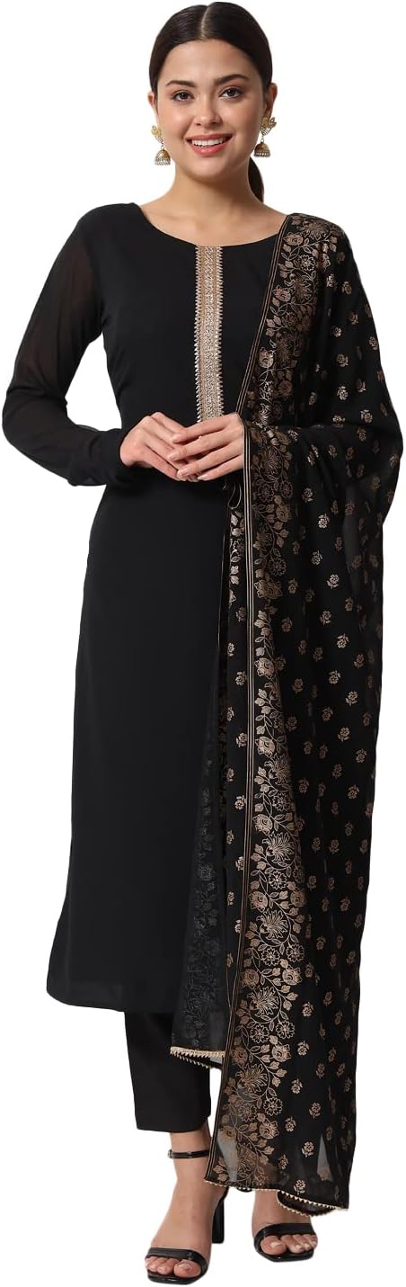 Be the first to review “Women’s Black Poly Crepe Straight Kurta with Pant and Dupatta”