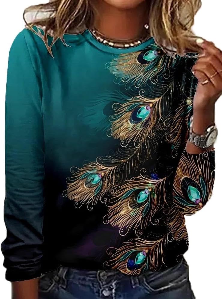 Womens Boho Floral Long Sleeve Dressy Casual Blouse Vintage Ethnic Print Tops Shirts
