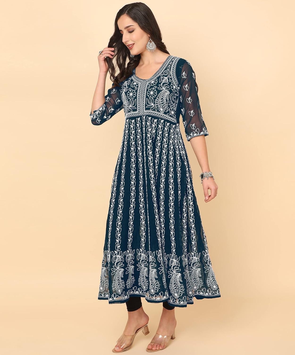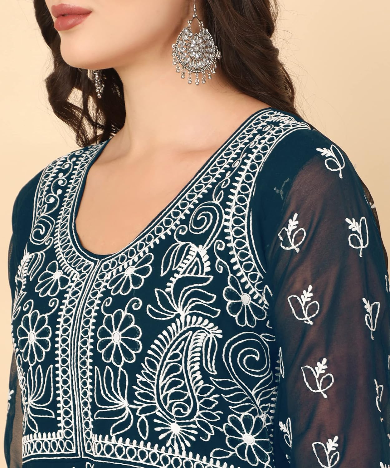 Women’s Embroidered Chikankari Work Georgette Anarkali Kurta