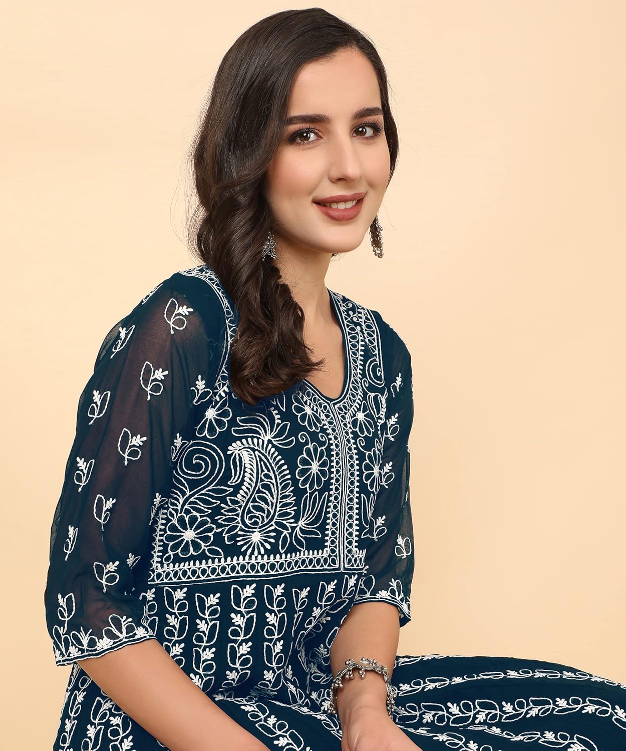 Made from lightweight and breathable Georgette fabric, this Anarkali kurta drapes gracefully, providing comfort without compromising on style.