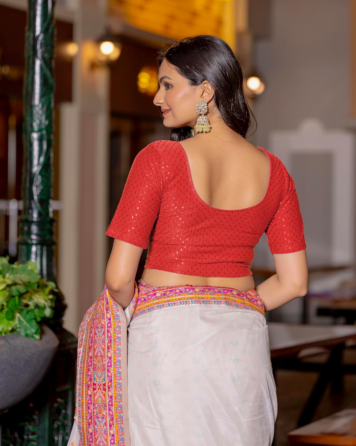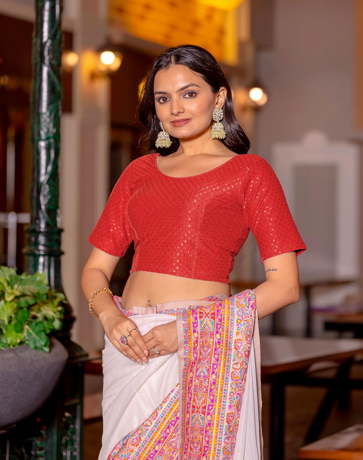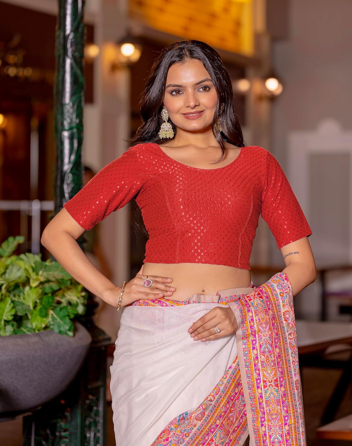 Introducing the epitome of grace and versatility – the Jaanvi Fashion Women’s Round Neck Cotton Dobby Lycra Elbow Sleeve Readymade Saree Blouse. Crafted to perfection, this blouse seamlessly combines traditional charm with contemporary flair, making it a must-have addition to your ethnic wardrobe. Designed with a classic round neck that exudes elegance and sophistication, this blouse features elbow-length sleeves for a touch of modesty and comfort. The use of premium quality cotton dobby lycra fabric ensures a luxurious feel against your skin, while also providing excellent stretch and durability. Available in a captivating array of colors including timeless black, rich wine, subtle beige, majestic maroon red, vibrant bottle green, charming pink, and more, you’ll find the perfect shade to complement your saree ensemble. With sizes ranging from L to XXL, every woman can indulge in the luxury of a perfectly fitted blouse that accentuates her curves and enhances her silhouette. Whether you’re attending a wedding, a festive celebration, or a formal event, the Jaanvi Fashion Women’s Round Neck Cotton Dobby Lycra Elbow Sleeve Readymade Saree Blouse promises to elevate your saree look effortlessly, ensuring you radiate confidence and grace with every step. Choose style, comfort, and elegance – choose Jaanvi Fashion.