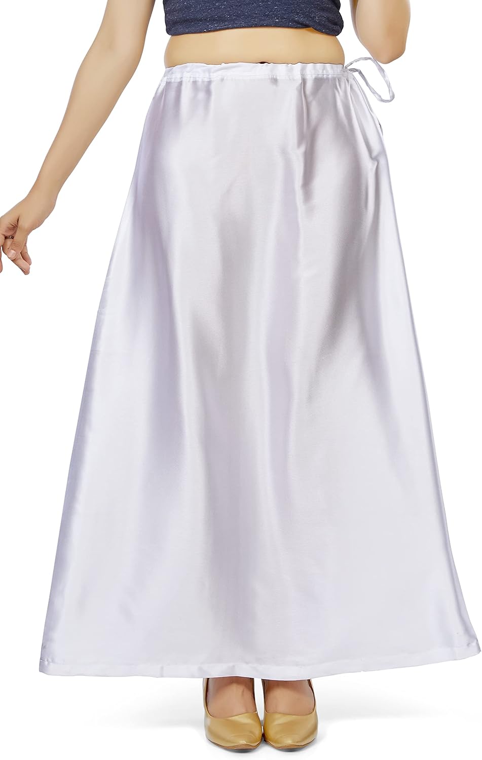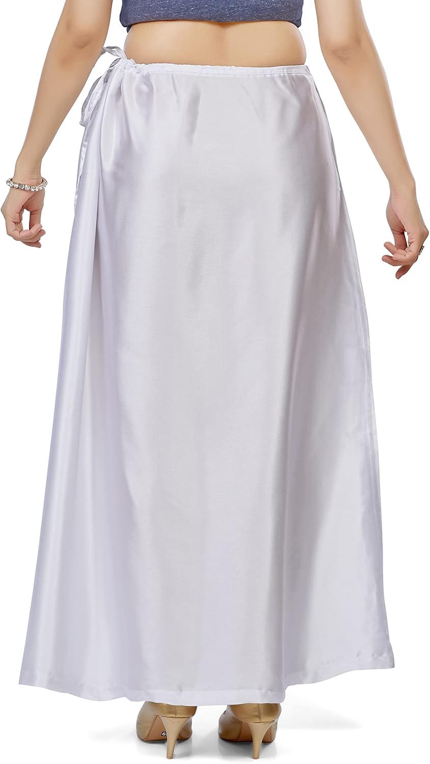 This Petticoat is made from 100% Satin Silk Fabric, which is Soft & Smooth in Texture. This is a Readymade Stitched Saree Petticoat to be wore under the Saree. The Elegant Shiny Material brings a Graceful look to your Saree. This Petticoat is really light to wear and offers ease of movement. You can team this Petticoat with Plain Chiffon Sarees, Designer Sarees, Georgette Sarees, etc. All the petticoats are one size fits all, with a drawstring waist. You can adjust the size of petticoat by pulling the drawstring.