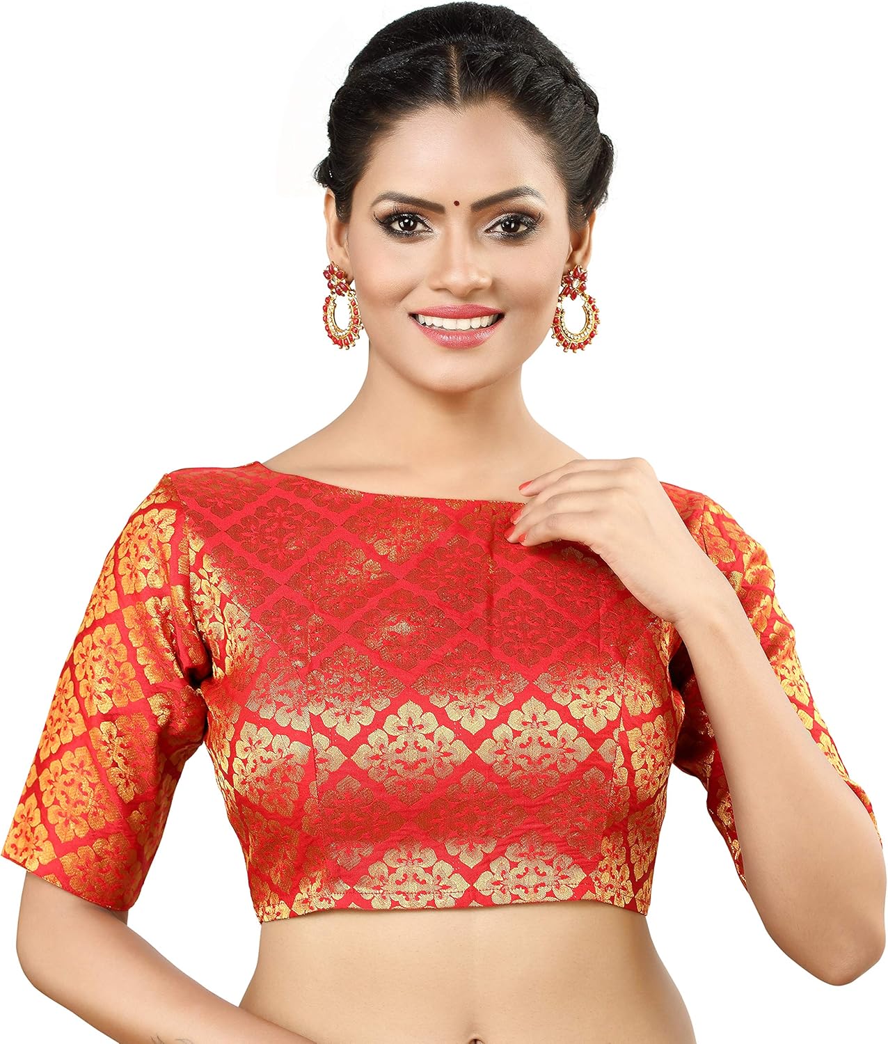 This is a Fully Stitched Non-Padded Readymade Saree Blouse Made From Rich Banaras Brocade. This Blouse Has Boat Neck Design Alongwith Elbow Length Sleeves. It Opens From the Back and Has Hooks As the Closure Type. Pure Cotton Inner Lining is Provided for Xtra Comfort and Margins for Xtensions are Also Available. Available In Seven Attractive Colors.
