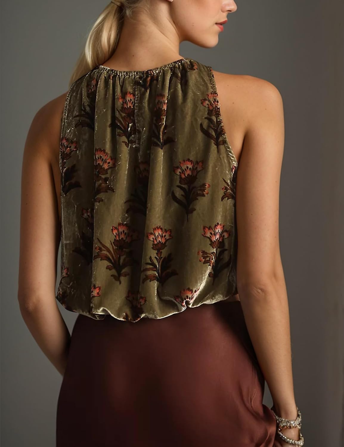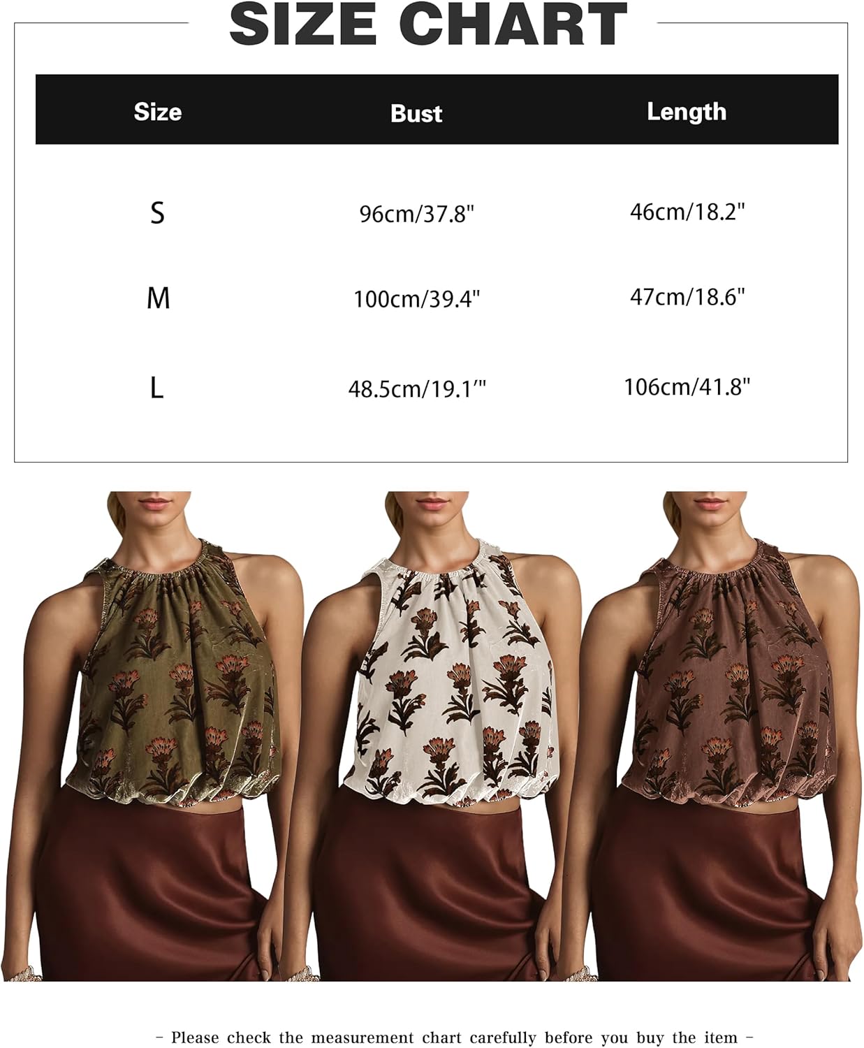 Sleeveless Bubble Floral Velvet Crop Top Racerback Flower Tunic Tank Top
