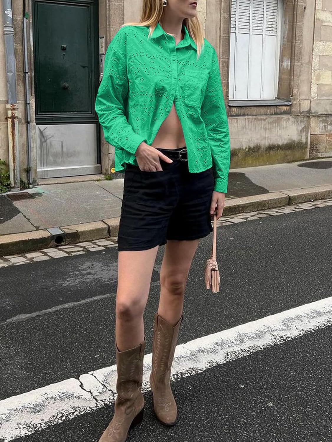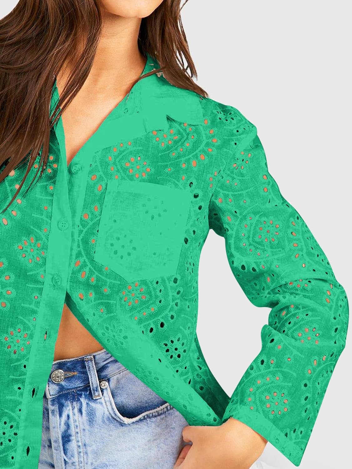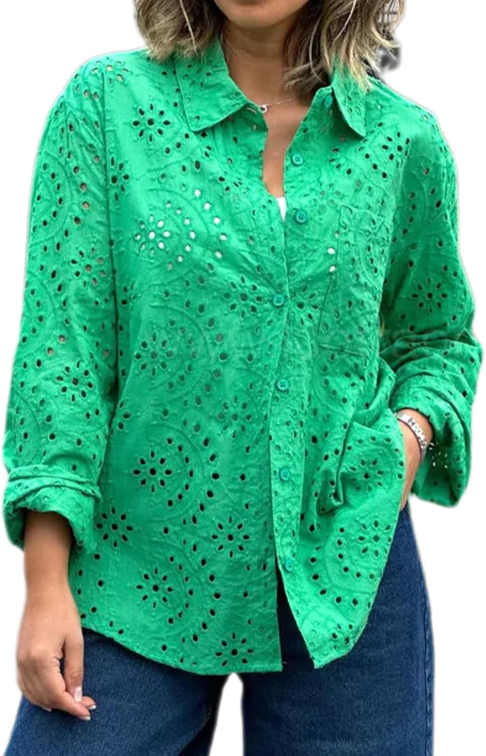 Eyelet Button Down Shirt for Women