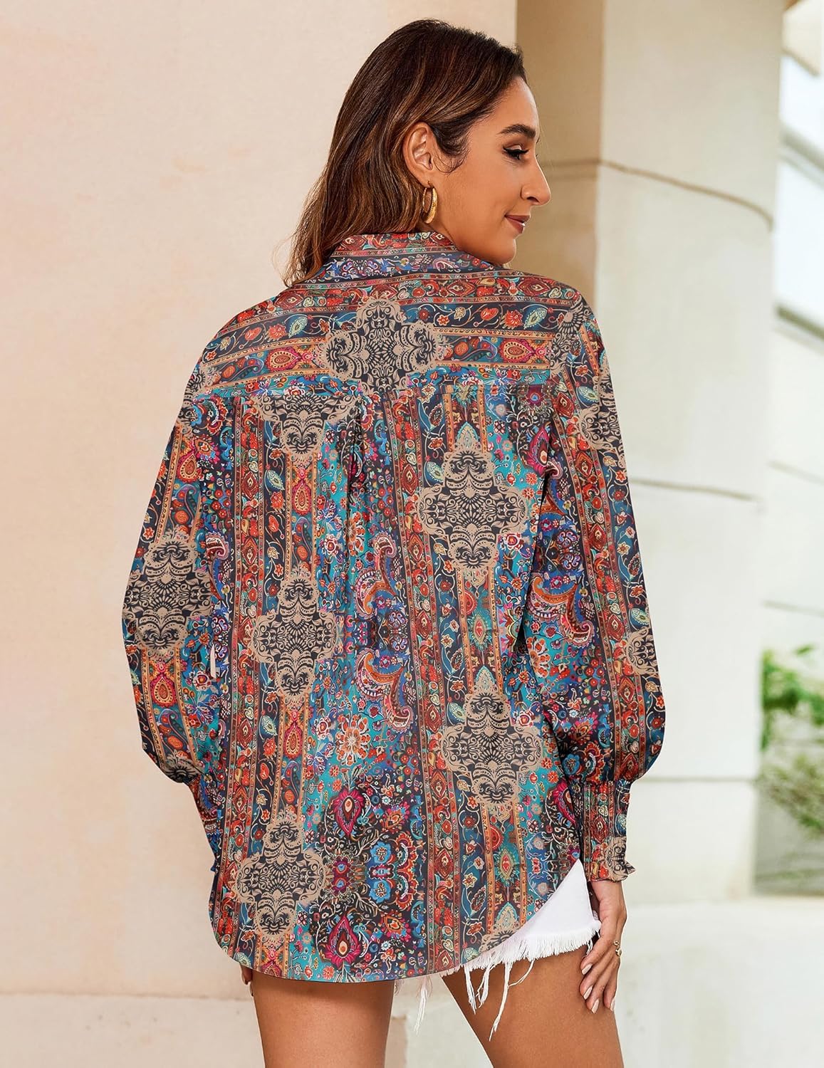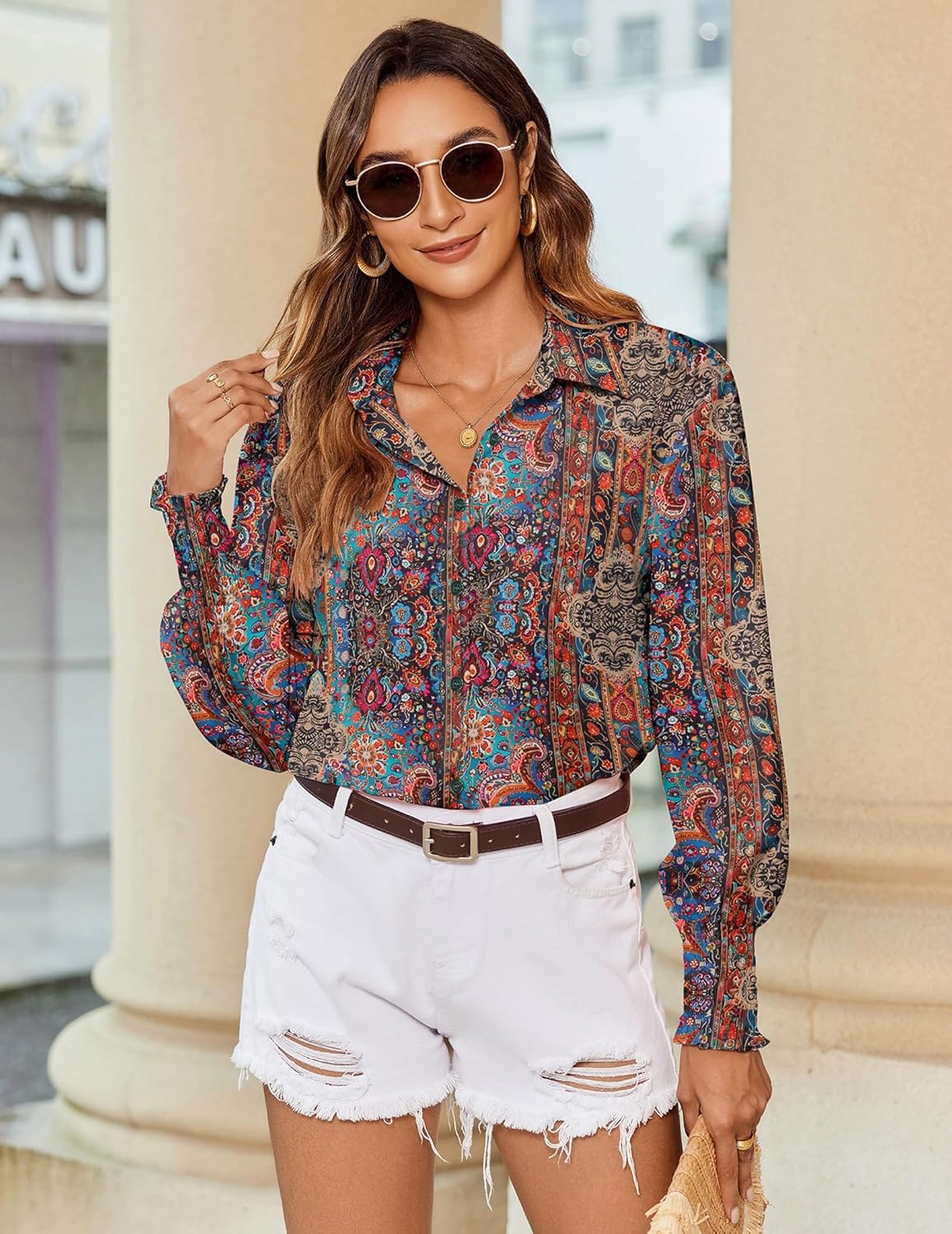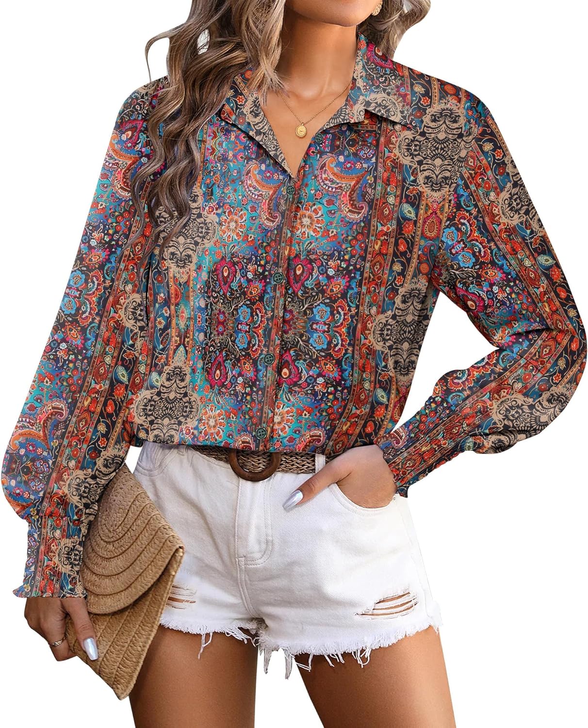 Zeagoo Womens Shirts Dressy Casual Striped Patterned Blouse 2024 Fall Tops